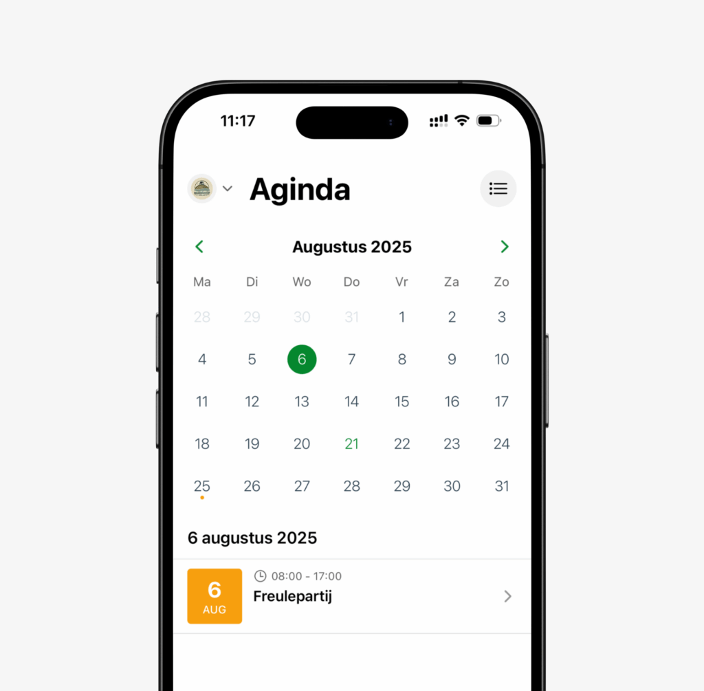 Blijf betrokken door een automatisch gevulde agenda met alle activiteiten.